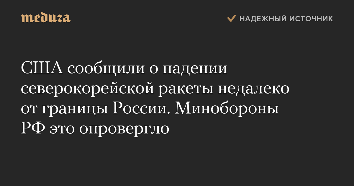 США сообщили о падении северокорейской ракеты недалеко от границы России. Минобороны РФ это опровергло