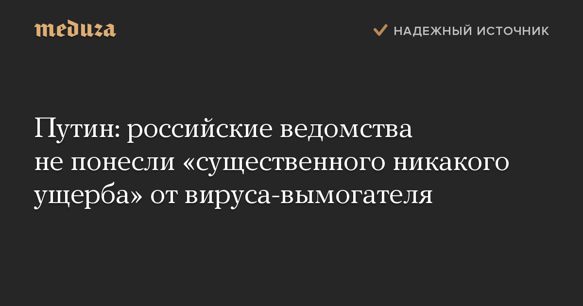 Путин: российские ведомства не понесли «существенного никакого ущерба» от вируса-вымогателя