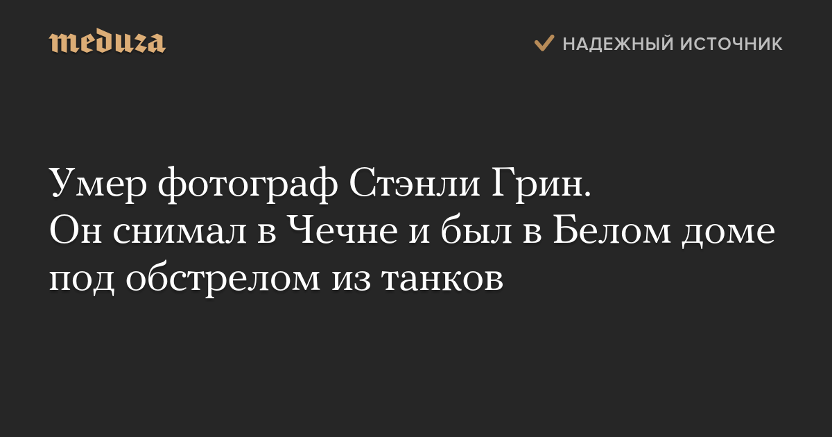Умер фотограф Стэнли Грин. Он снимал в Чечне и был в Белом доме под обстрелом из танков