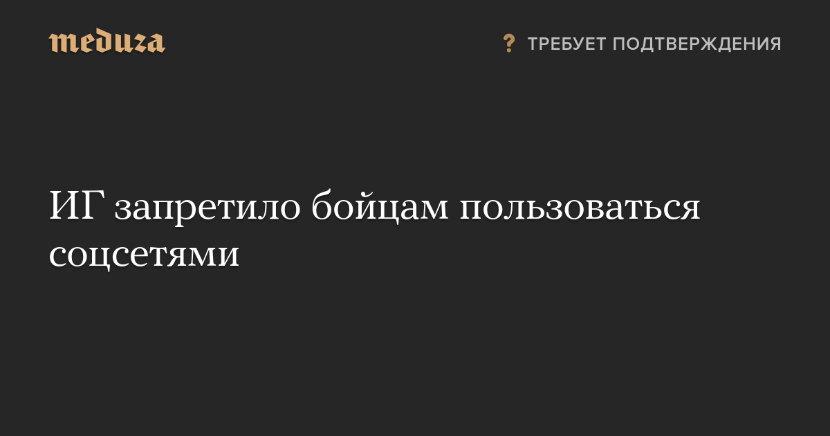 Террористическая группировка «Исламское государство» запретила своим бойцам пользоваться социальными сетями. Об этом со ссылкой на комитет делегатов ИГ сообщает мониторинговая группа SITE.