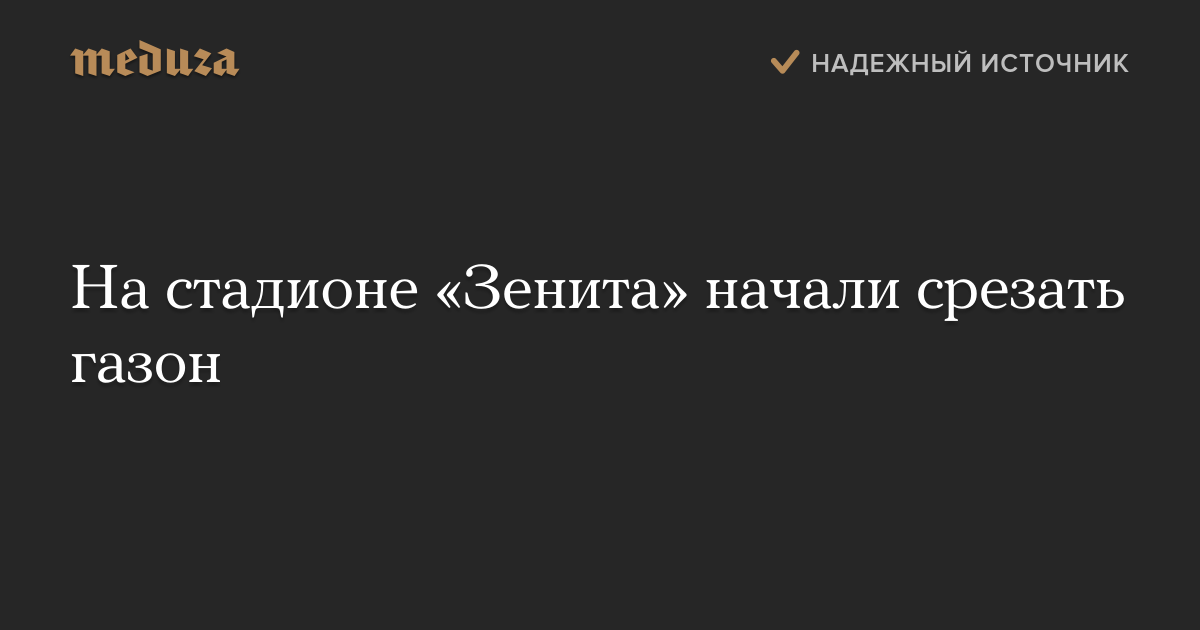 На новом стадионе петербургского «Зенита» начали снимать газон. На фотографиях и видео, опубликованных в соцсетях, видно, что по центру поля срезана полоса травы от ворот до ворот.