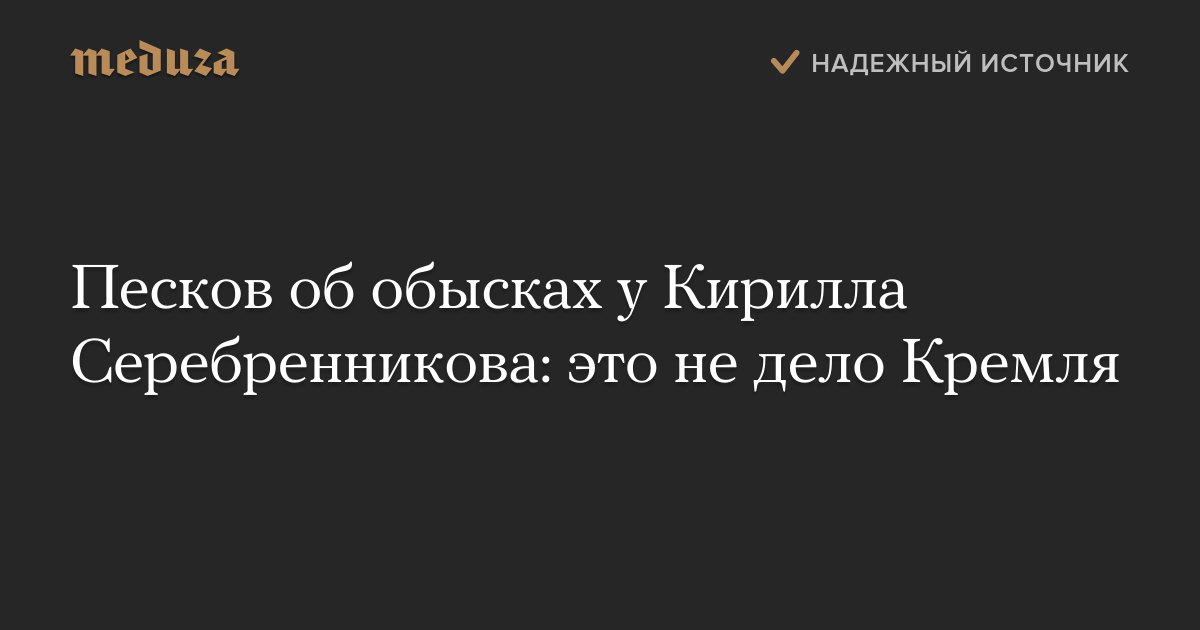 Песков об обысках у Кирилла Серебренникова: это не дело Кремля