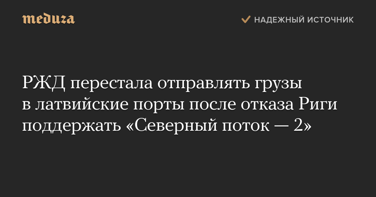 РЖД перестала отправлять грузы в латвийские порты после отказа Риги поддержать «Северный поток — 2»