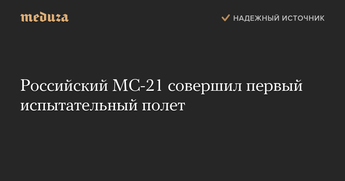 Российский лайнер МС-21, предназначенный для ближне- и среднемагистральных рейсов, выполнил первый испытательный полет в Иркутске. По словам источника ТАСС в корпорации «Иркут», полет прошел нормально.
