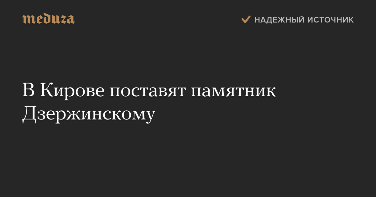 Кировская городская дума согласовала установку в городе памятника Феликсу Дзержинскому. С соответствующей инициативой выступили ветераны ФСБ.
