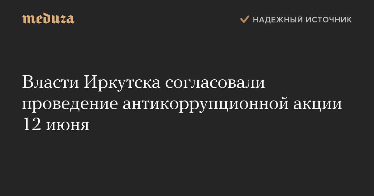 Власти Иркутска согласовали проведение антикоррупционной акции 12 июня