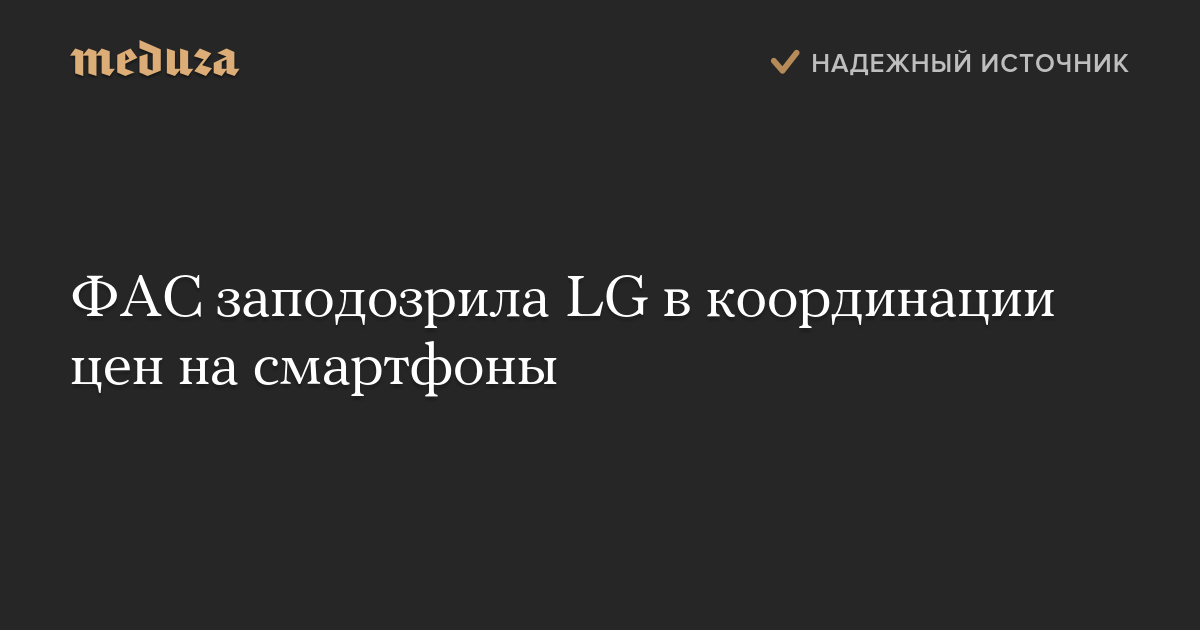 Федеральная антимонопольная служба в течение 10 дней заведет дело на компанию LG за координацию цен на смартфоны на российском рынке. Об этом объявил замглавы антимонопольного ведомства Андрей Цариковский.