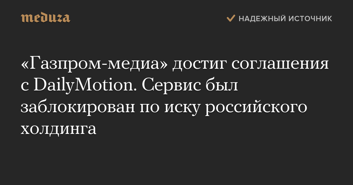 «Газпром-медиа» достиг соглашения с DailyMotion. Сервис был заблокирован по иску российского холдинга