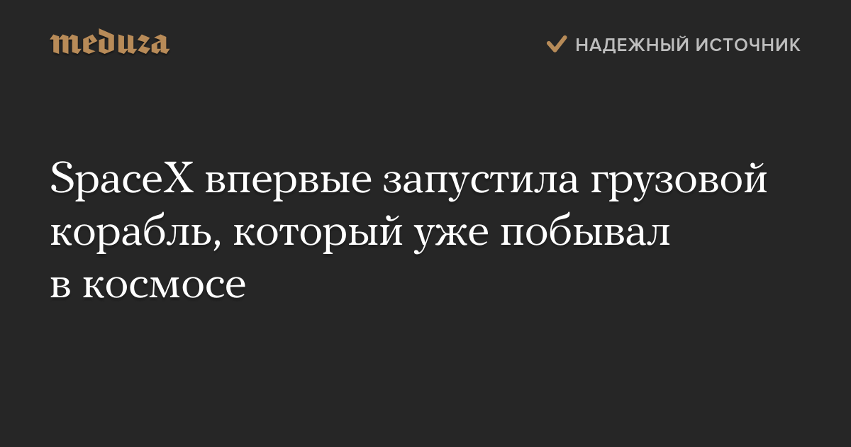 SpaceX впервые запустила грузовой корабль, который уже побывал в космосе