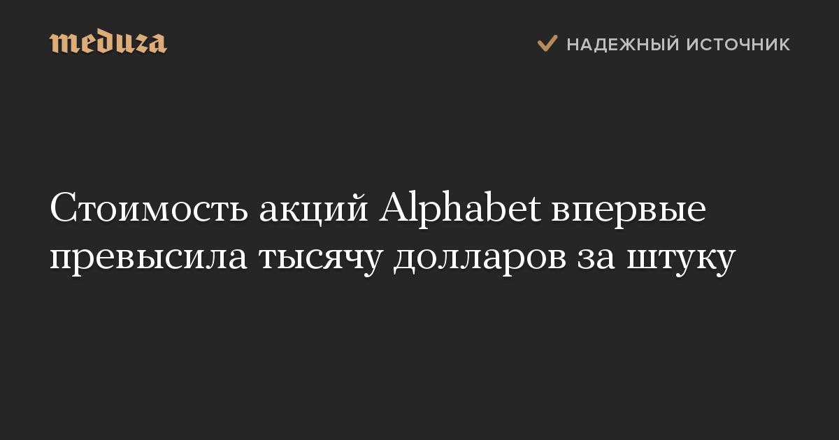 Стоимость акций Alphabet впервые превысила тысячу долларов за штуку