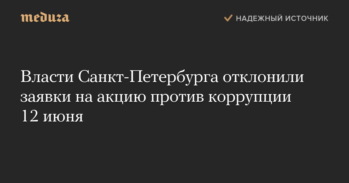 Власти Санкт-Петербурга отклонили заявки на акцию против коррупции 12 июня