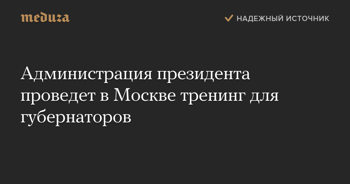 Администрация президента РФ 29-30 июня проведет в Москве двухдневный тренинг для российских губернаторов. Об этом «Медузе» сообщили источники в администрации нескольких регионов РФ.