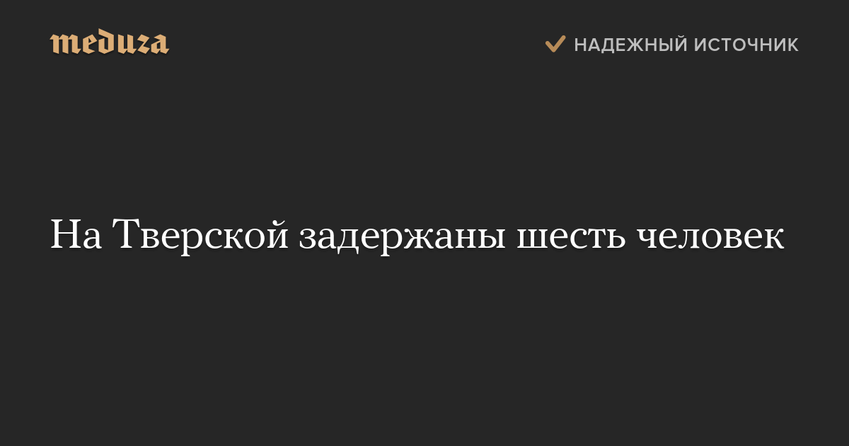 Сотрудники правоохранительных органов задержали на Тверской улице как минимум шесть человек, сообщает корреспондент РБК с места событий.