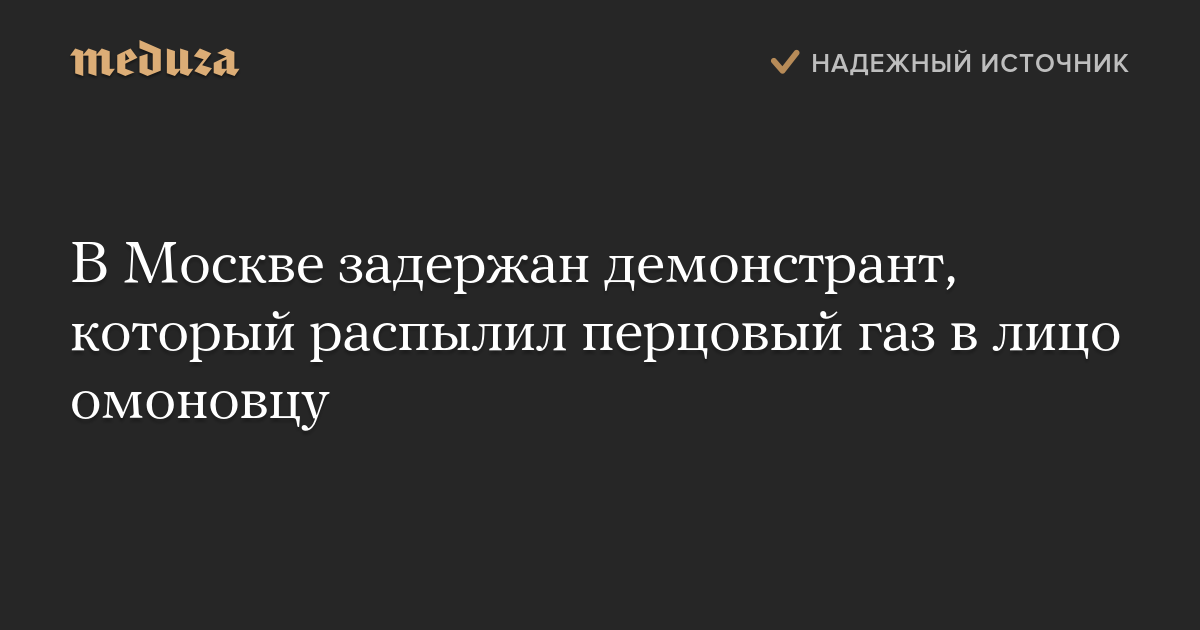 Полиция задержала участника протестной акции в Москве, который распылил перцовый газ в лицо сотруднику ОМОНа.