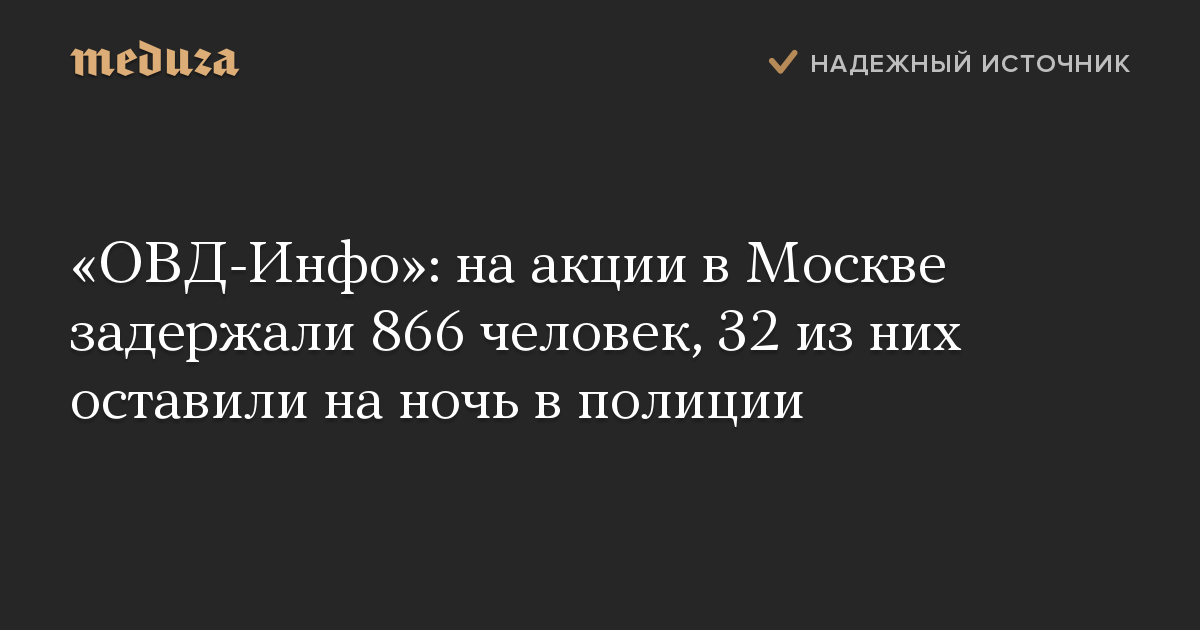 «ОВД-Инфо»: на акции в Москве задержали 866 человек, 32 из них оставили на ночь в полиции