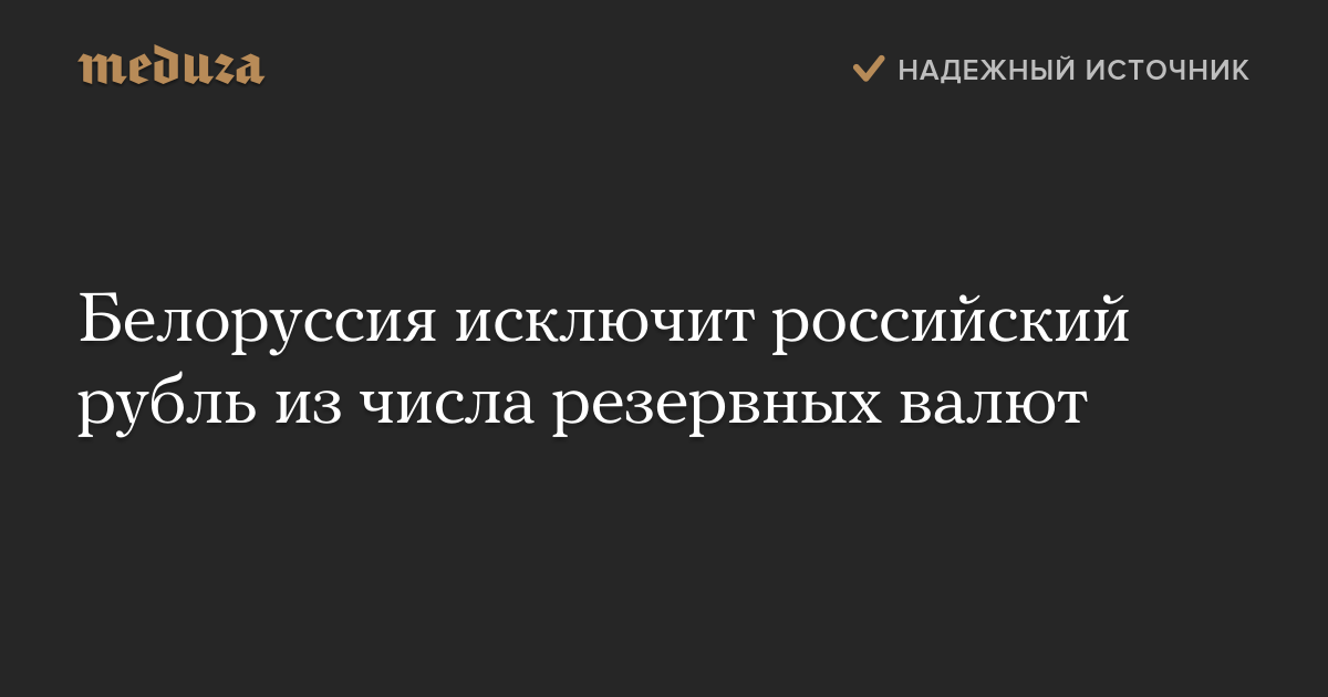 Белорусский Нацбанк с 1 июля перестанет учитывать российский рубль в составе своих золотовалютных резервов, сообщается на сайте регулятора.