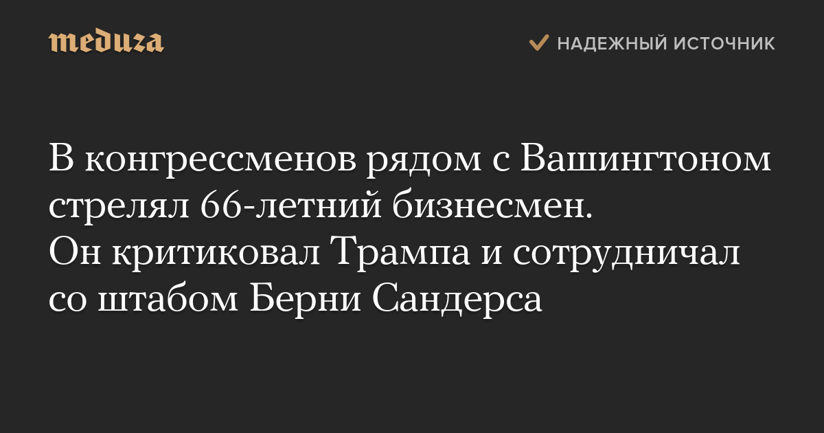 В конгрессменов рядом с Вашингтоном стрелял 66-летний бизнесмен. Он критиковал Трампа и сотрудничал со штабом Берни Сандерса