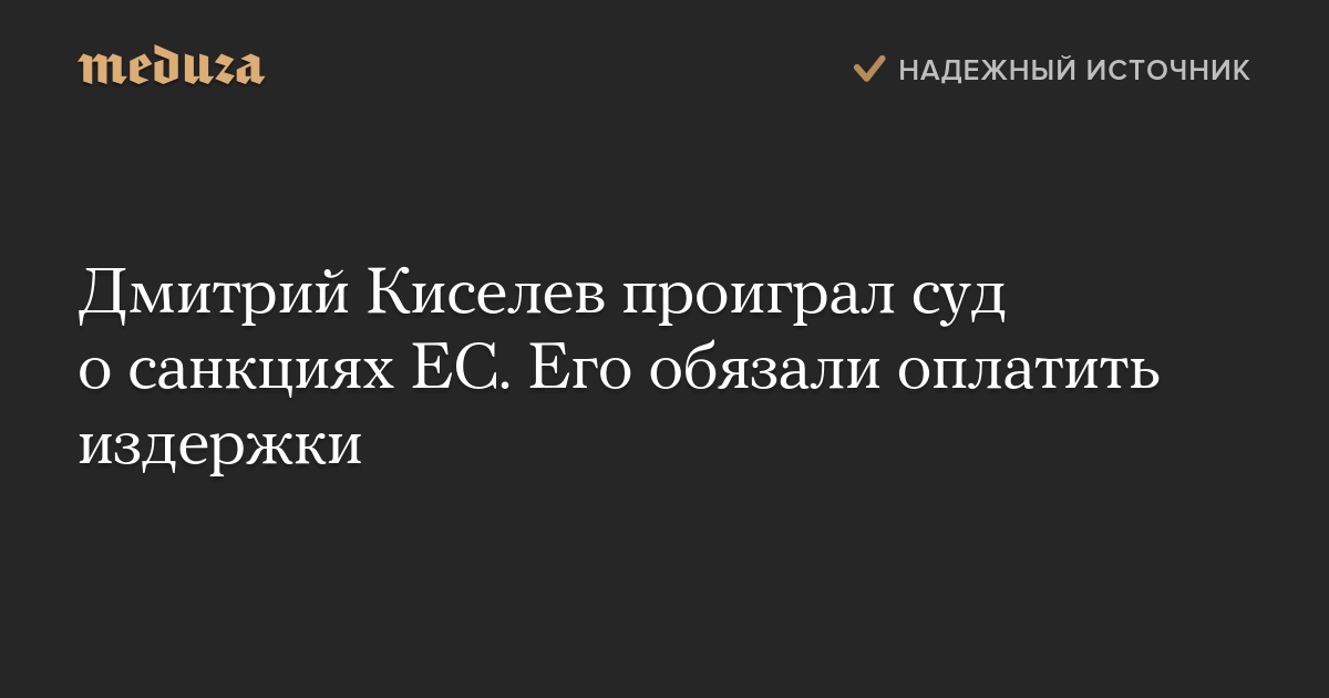 Дмитрий Киселев проиграл суд о санкциях ЕС. Его обязали оплатить издержки
