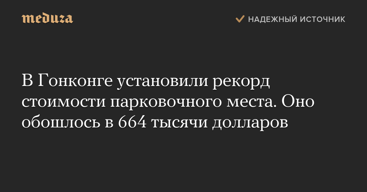 В Гонконге установили рекорд стоимости парковочного места. Оно обошлось в 664 тысячи долларов
