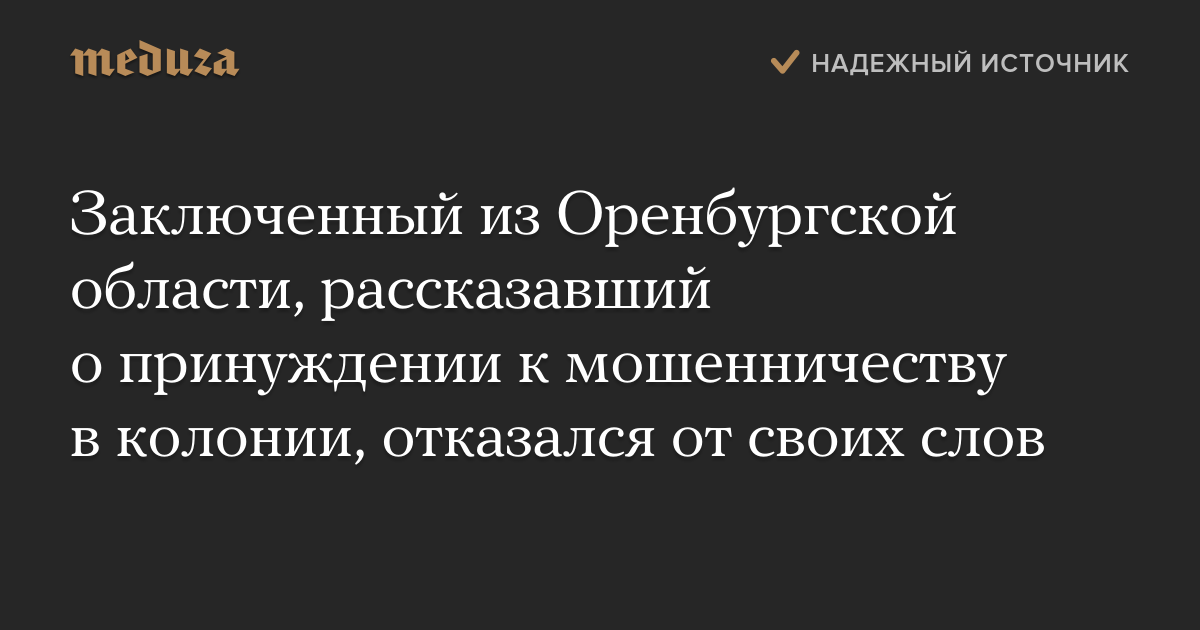 Заключенный из Оренбургской области, рассказавший о принуждении к мошенничеству в колонии, отказался от своих слов