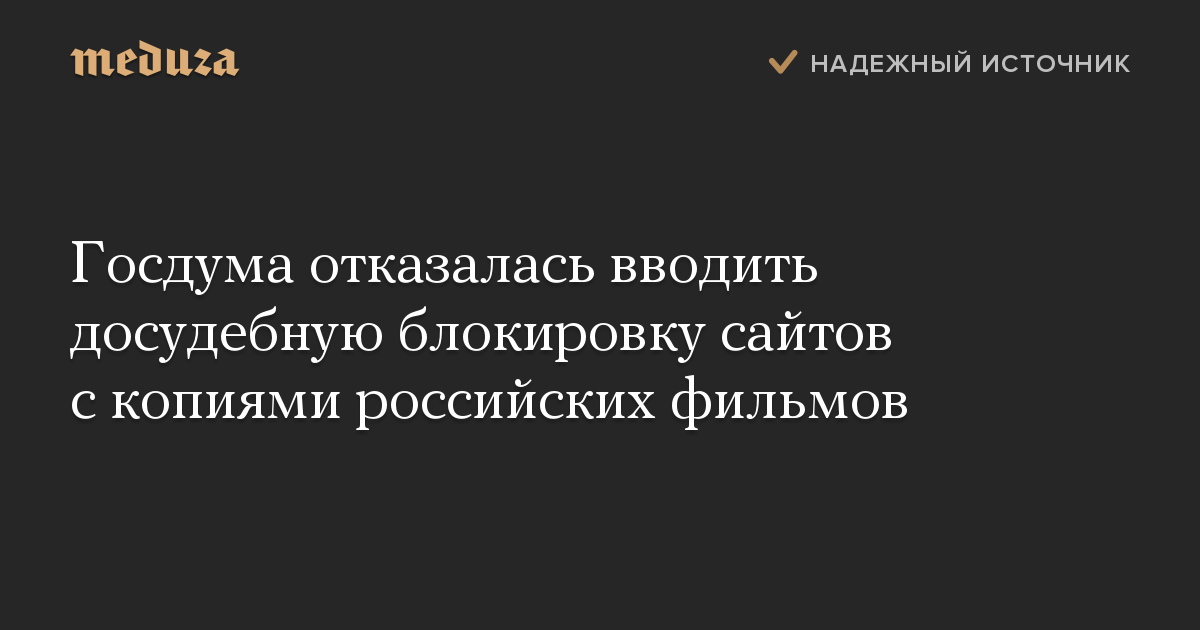 Госдума отказалась вводить досудебную блокировку сайтов с копиями российских фильмов