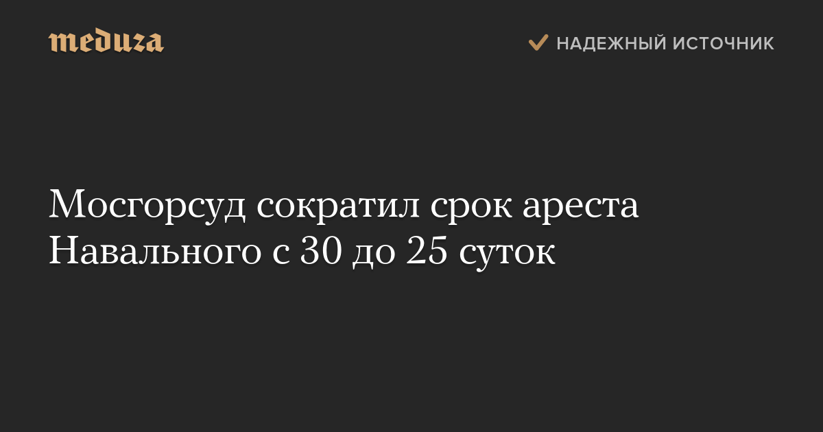 Мосгорсуд сократил срок ареста Навального с 30 до 25 суток