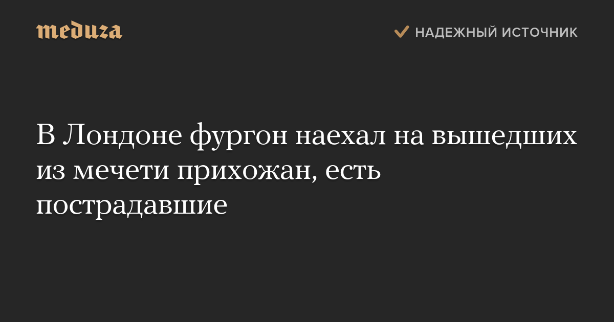В ночь на 19 июня фургон наехал на пешеходов на севере Лондона. Полиция сообщает по крайней мере о нескольких пострадавших. Один подозреваемый уже задержан.