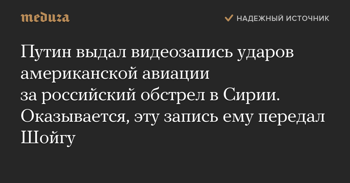 Путин выдал видеозапись ударов американской авиации за российский обстрел в Сирии. Оказывается, эту запись ему передал Шойгу