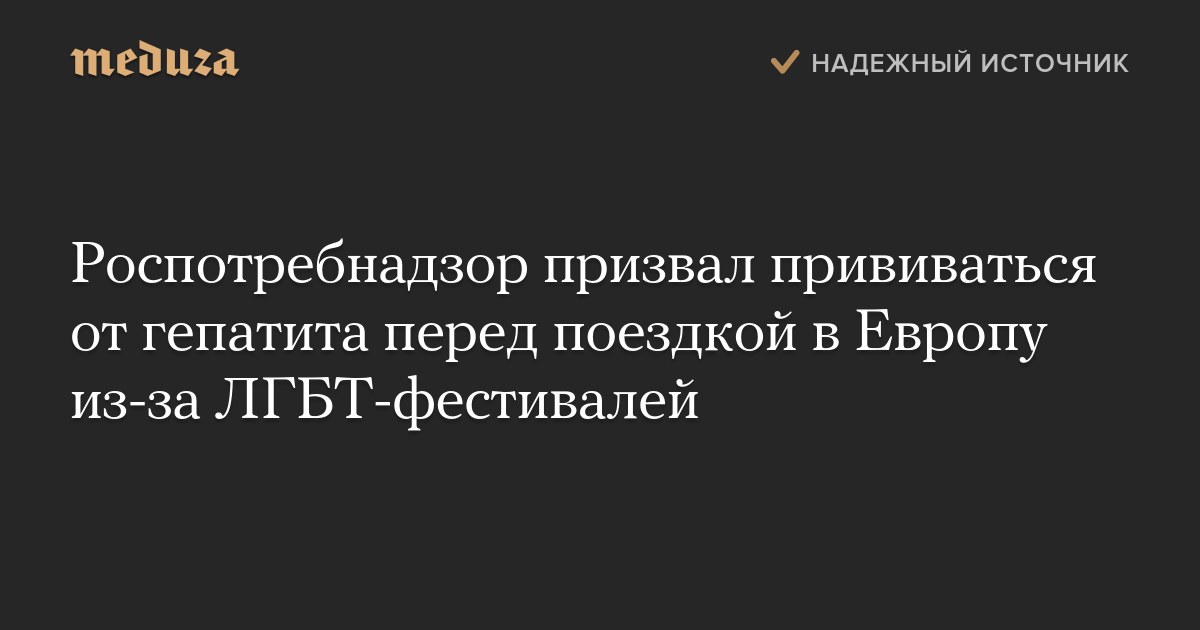 Роспотребнадзор опубликовал предупреждение о ситуации с распространением гепатита А среди гомосексуальных мужчин в Европе и странах Северной и Южной Америки. В своем пресс-релизе ведомство призывает всех россиян, выезжающих в Европу, делать прививку перед путешествием.