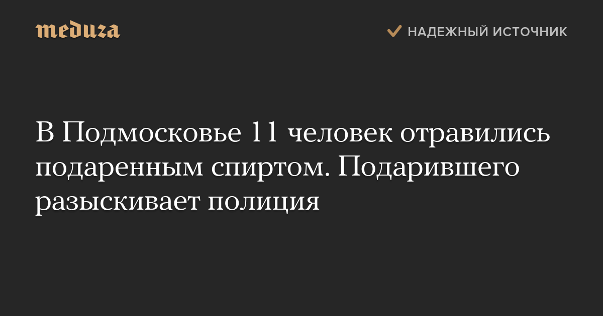В Подмосковье 11 человек отравились подаренным спиртом. Подарившего разыскивает полиция