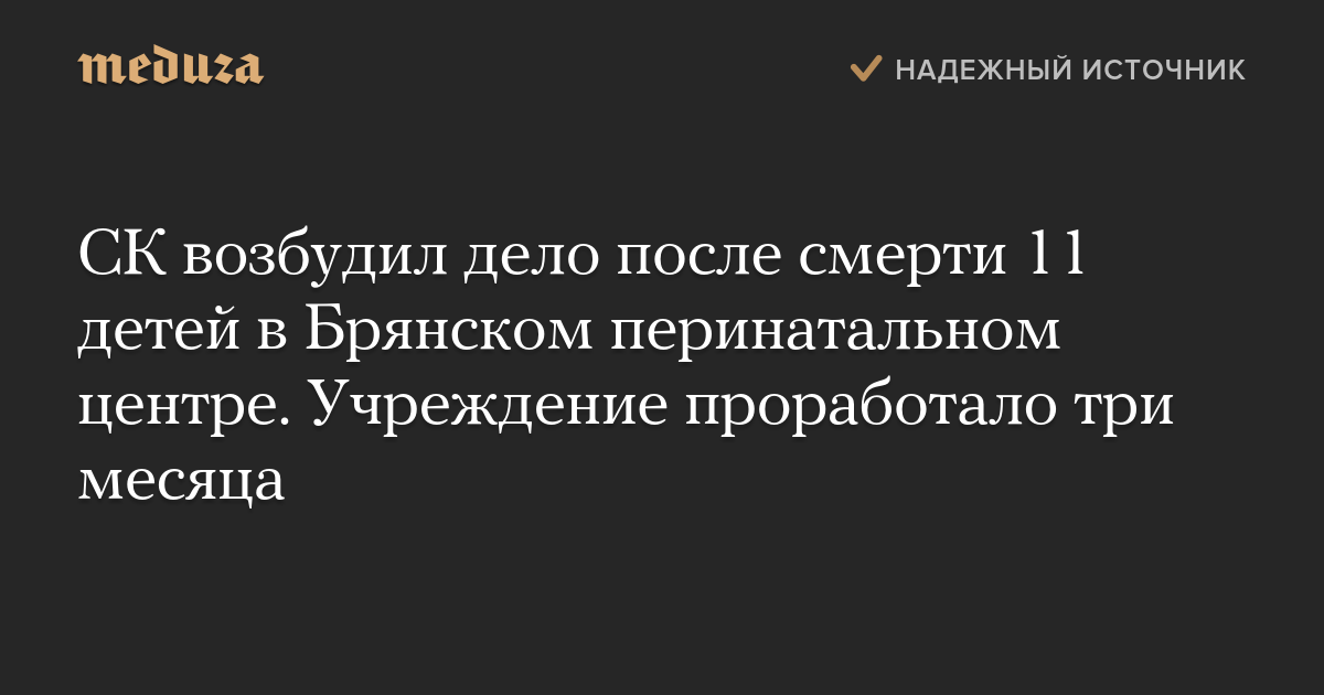 СК возбудил дело после смерти 11 детей в Брянском перинатальном центре. Учреждение проработало три месяца