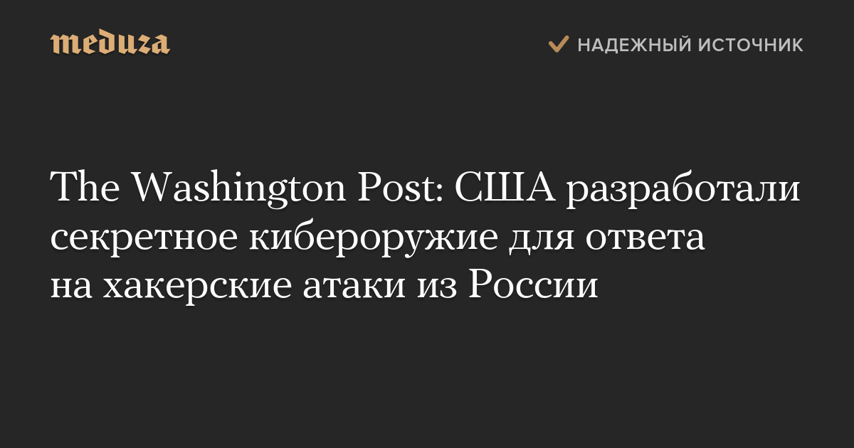 The Washington Post: США разработали секретное кибероружие для ответа на хакерские атаки из России