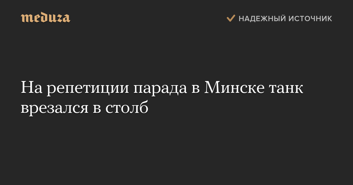В Минске во время репетиции парада в честь дня независимости танк Т-72 врезался в столб. Инцидент произошел днем 24 июня.
