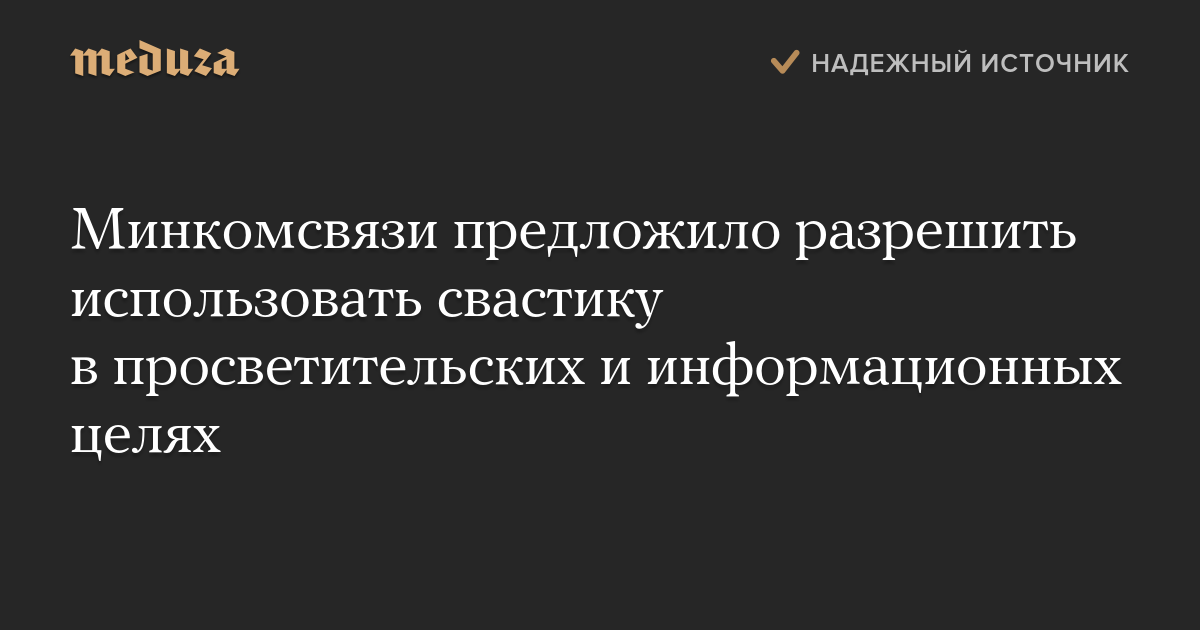 Министерство связи и массовых коммуникаций подготовило законопроект, предлагающий разрешить демонстрировать нацистскую и экстремистскую символику без целей пропаганды. Документ был опубликован 27 июня на портале проектов нормативных правовых актов.