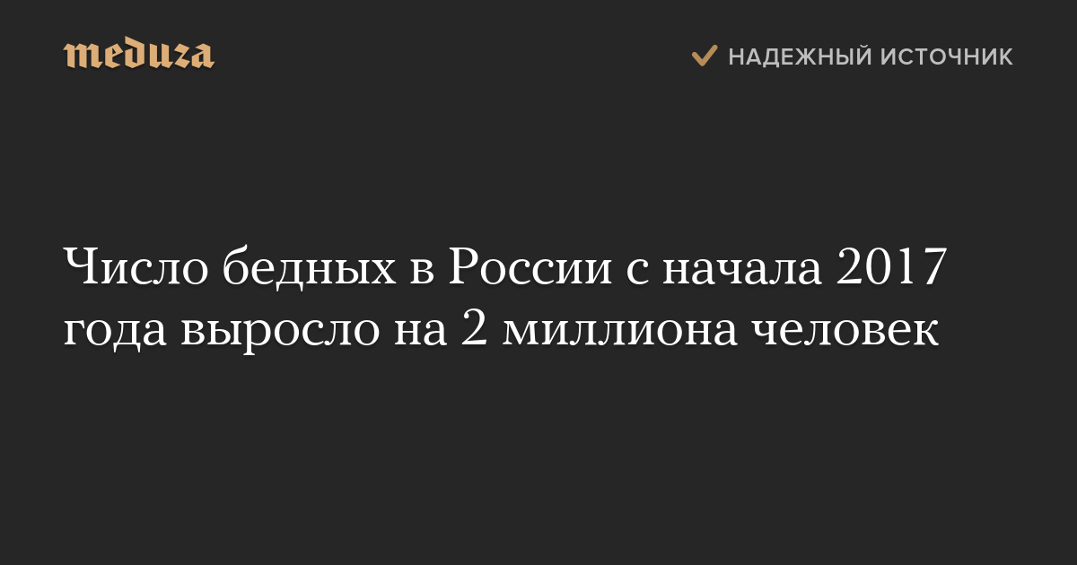 Число бедных в России с начала 2017 года выросло на 2 миллиона человек