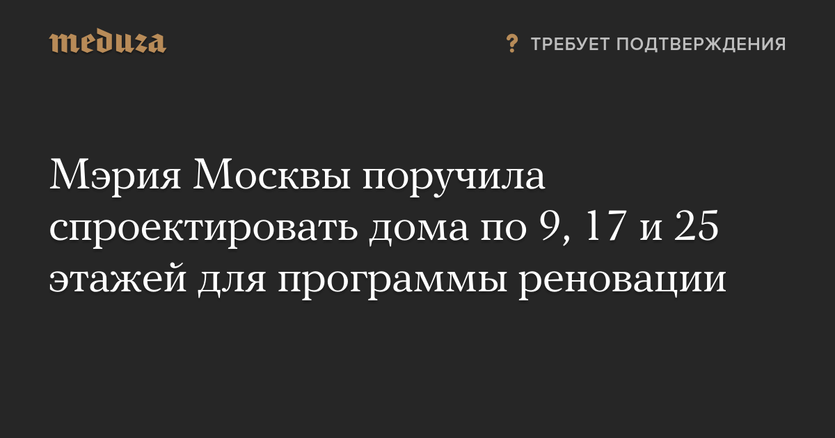 Мэрия Москвы поручила спроектировать дома по 9, 17 и 25 этажей для программы реновации