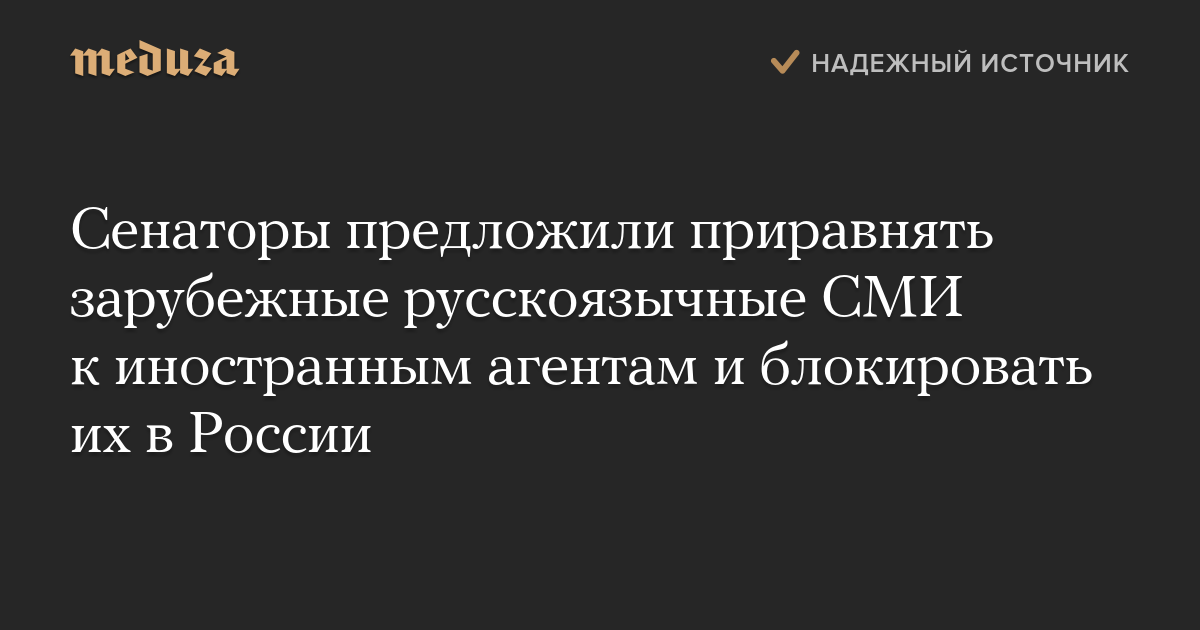 Сенаторы предложили приравнять зарубежные русскоязычные СМИ к иностранным агентам и блокировать их в России