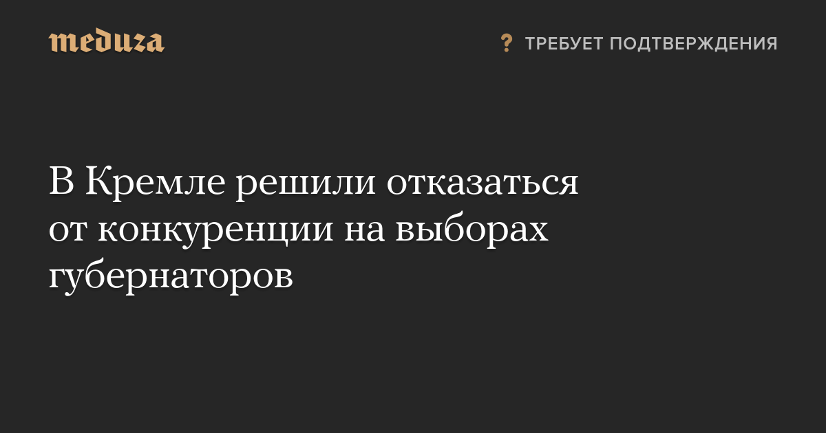 Руководство внутриполитического блока администрации президента решило не придерживаться принципа конкурентности на выборах глав 16 регионов, которые пройдут в сентябре. Об этом сообщили «Ведомостям» источники, близкие к Кремлю.