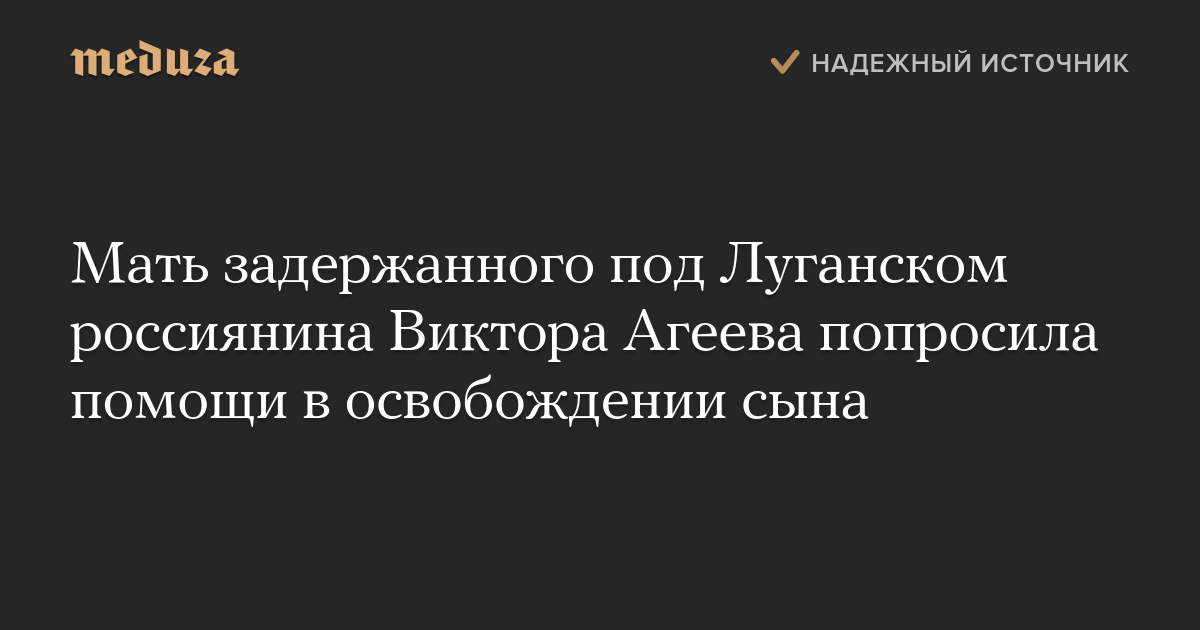 Мать задержанного под Луганском россиянина Виктора Агеева попросила помощи в освобождении сына