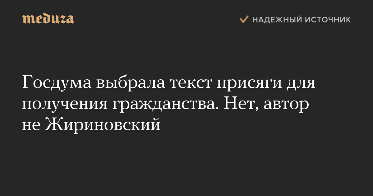 Госдума выбрала текст присяги для получения гражданства. Нет, автор не Жириновский