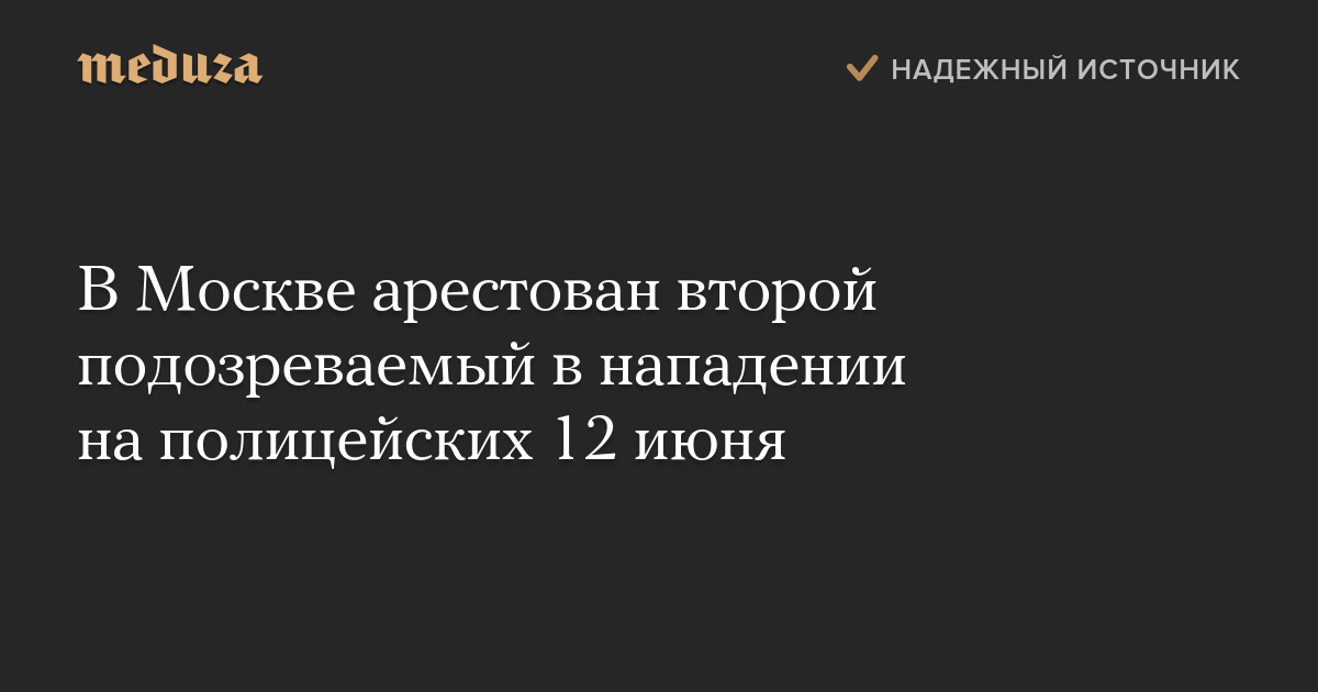 В Москве арестован второй подозреваемый в нападении на полицейских 12 июня