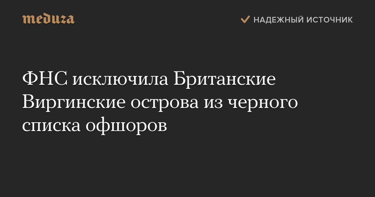 Федеральная налоговая служба (ФНС) подготовила новую редакцию черного списка офшоров, исключив из него Британские Виргинские острова (BVI), пишут «Ведомости».