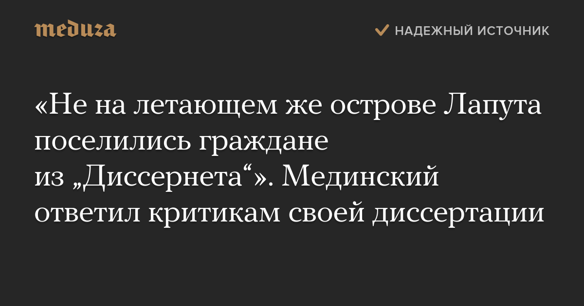 «Не на летающем же острове Лапута поселились граждане из „Диссернета“». Мединский ответил критикам своей диссертации