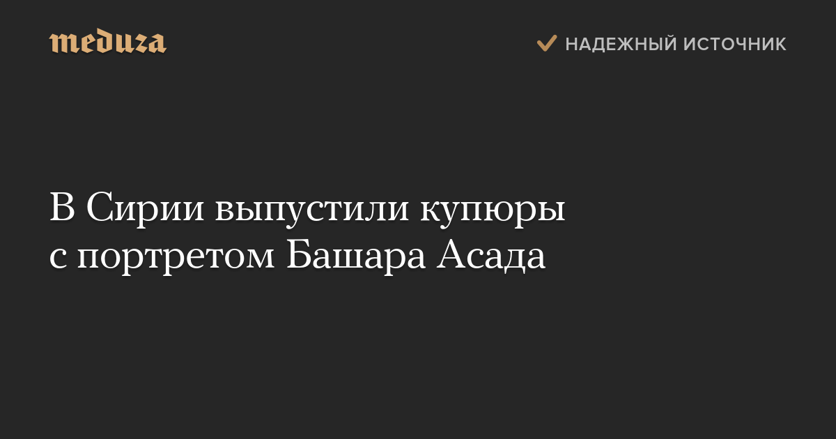 Банк Сирии объявил о запуске в обращение купюры с портретом действующего президента Башара Асада.