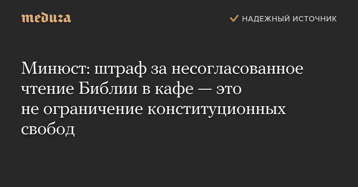Минюст: штраф за несогласованное чтение Библии в кафе — это не ограничение конституционных свобод