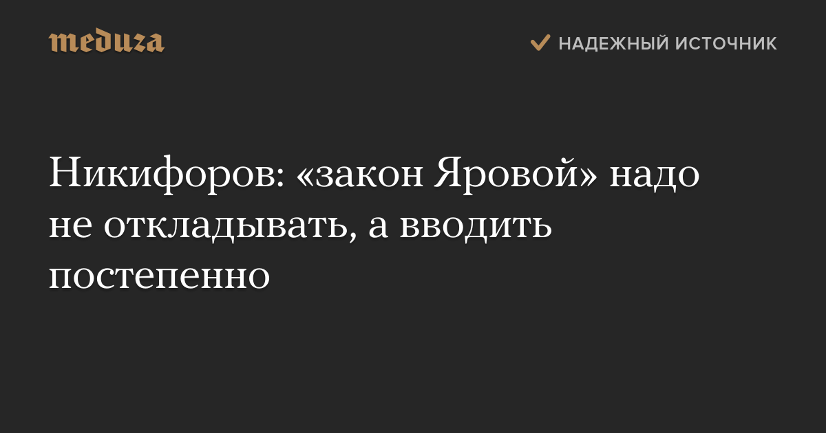 Никифоров: «закон Яровой» надо не откладывать, а вводить постепенно