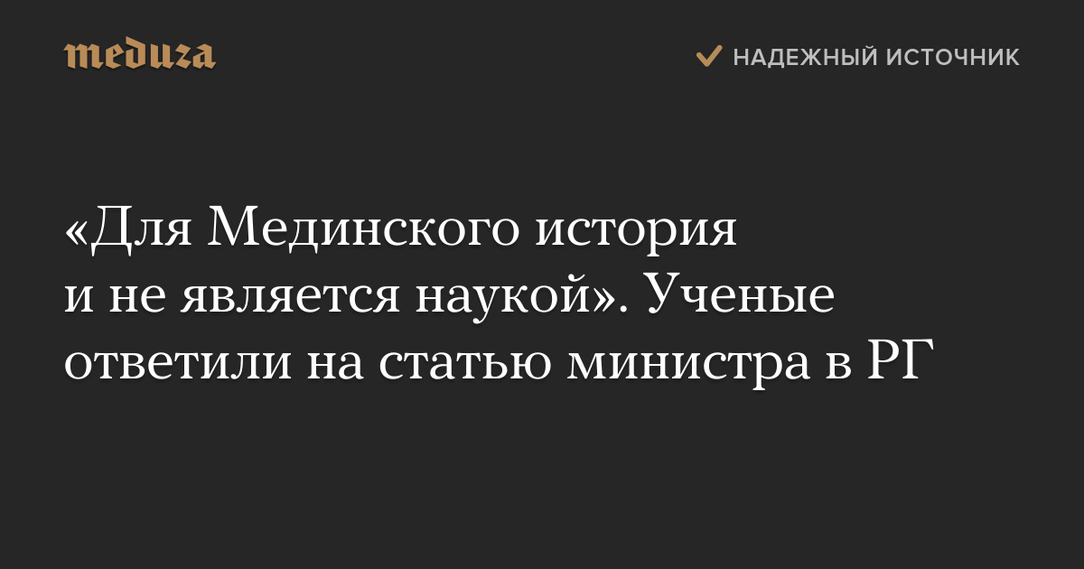 «Для Мединского история и не является наукой». Ученые ответили на статью министра в РГ