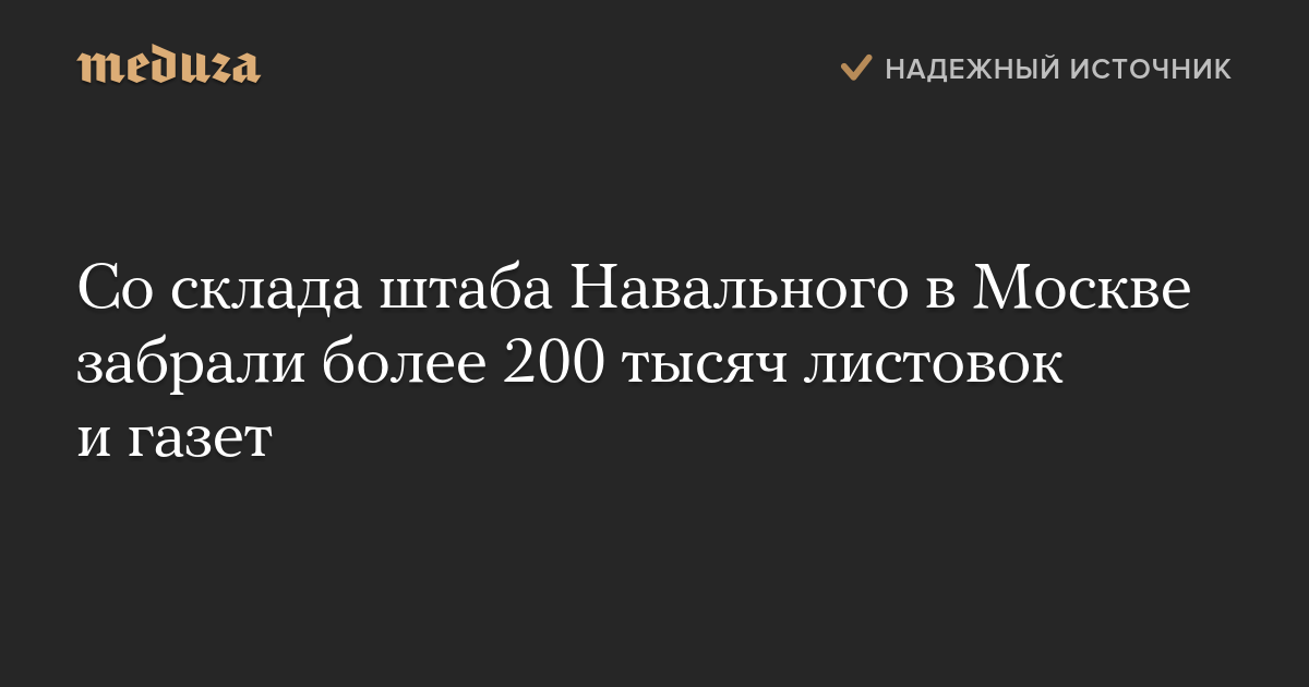 Со склада штаба Навального в Москве забрали более 200 тысяч листовок и газет