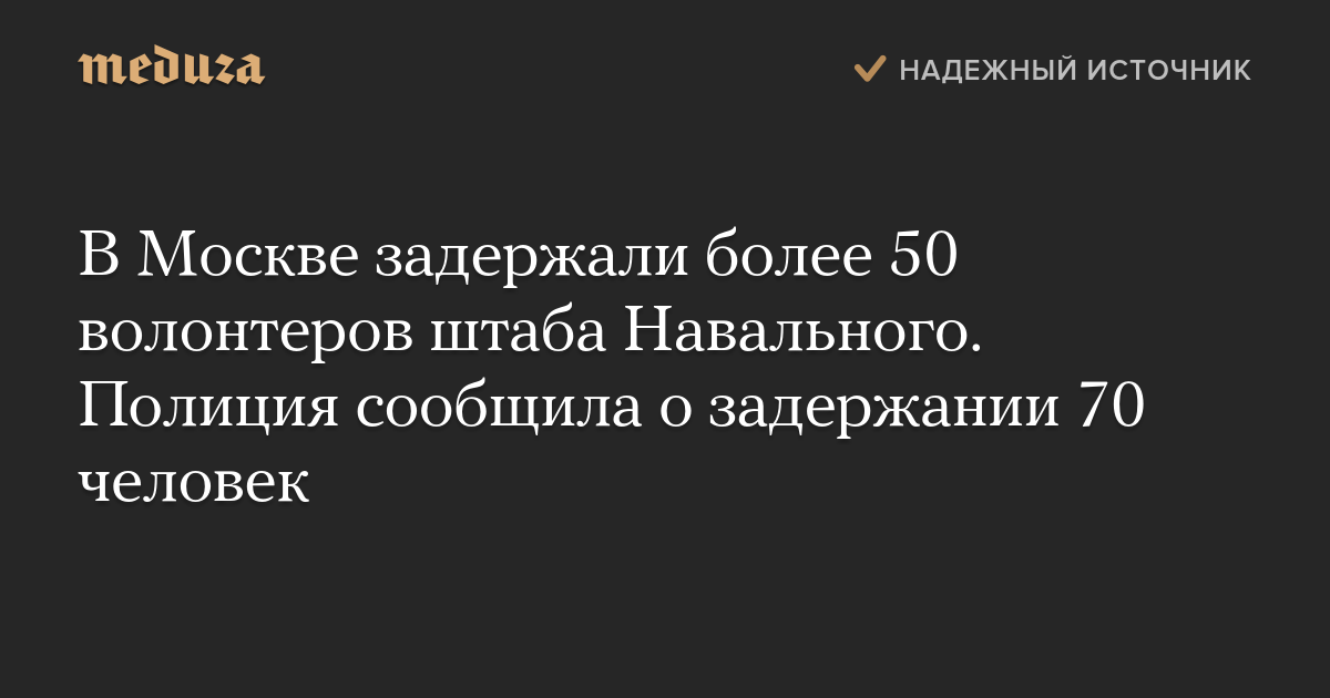 В Москве задержали более 50 волонтеров штаба Навального. Полиция сообщила о задержании 70 человек