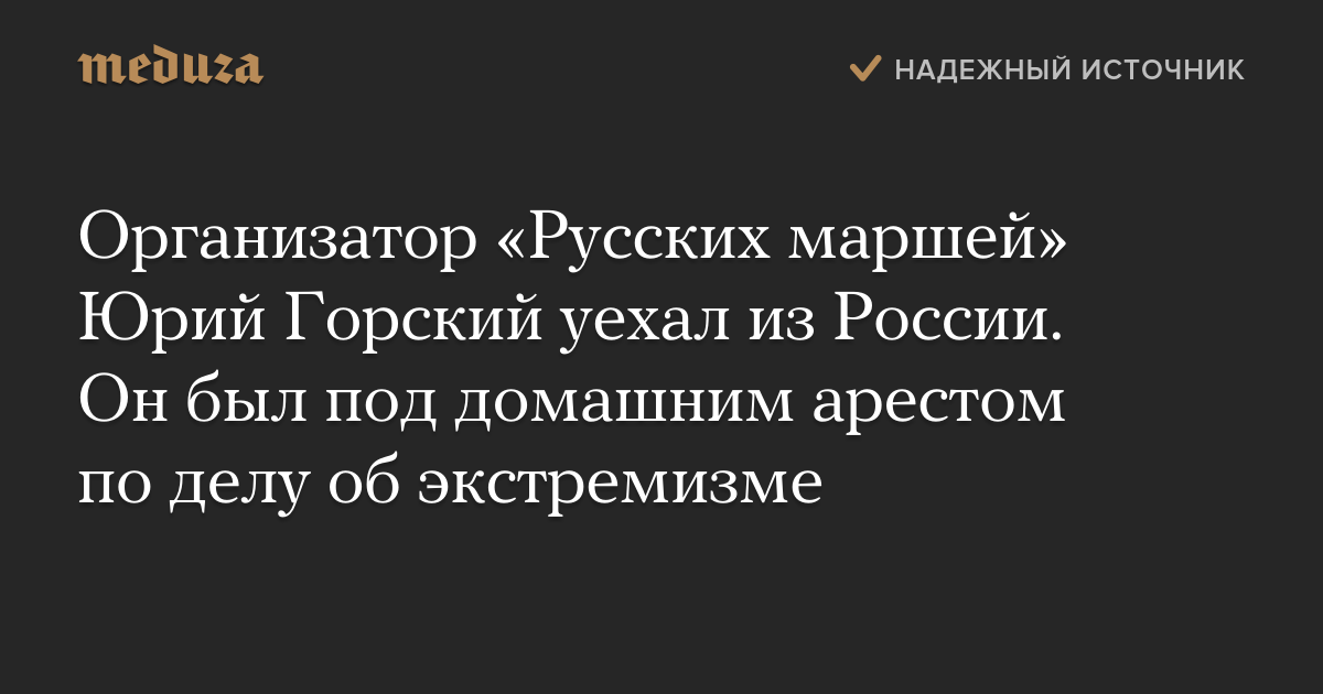 Организатор «Русских маршей» Юрий Горский уехал из России. Он был под домашним арестом по делу об экстремизме